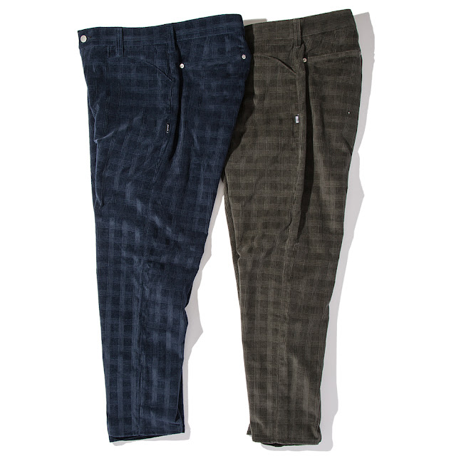 独特なコーデュロイ柄生地を使用して作成したワークトラウザー。内ポケットにC.P.テキスタイル使用。